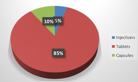 Fig. 2: Graphical representation of injectable, tablets and capsules prescribed