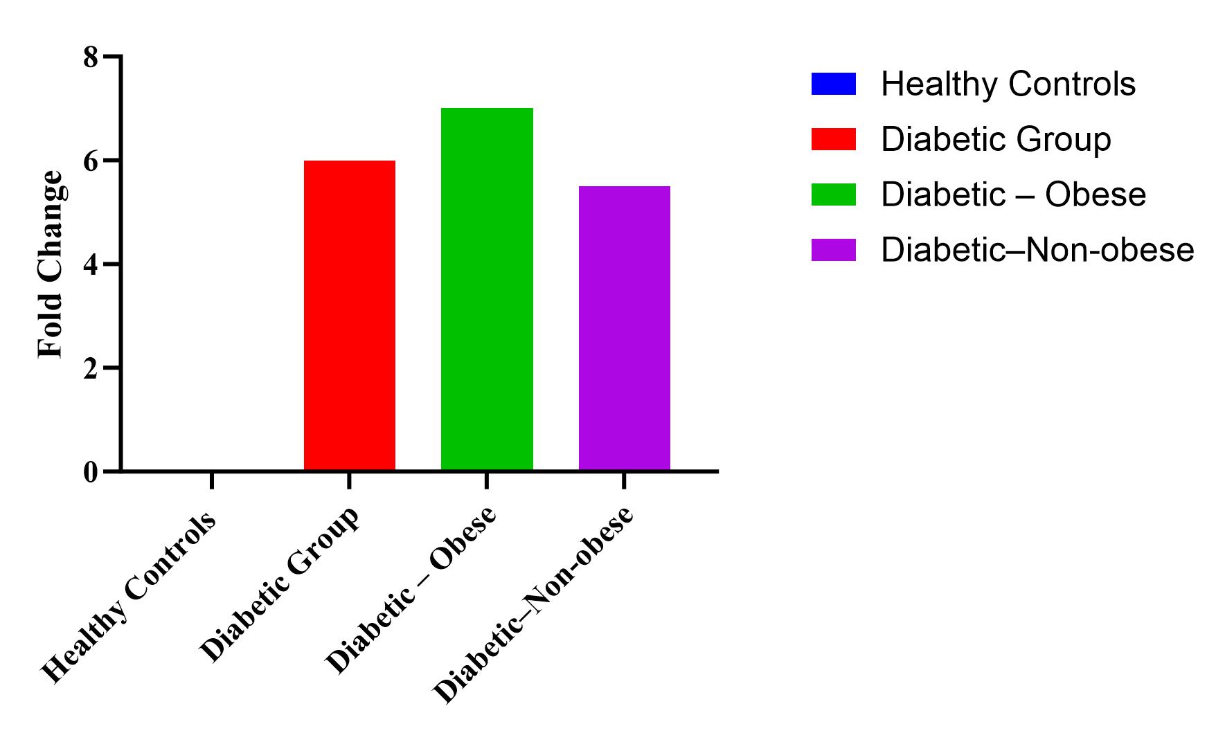 Fig. 2: Shows the fold increase in the diabetic group (both obese and non-obese) as compared to the healthy control