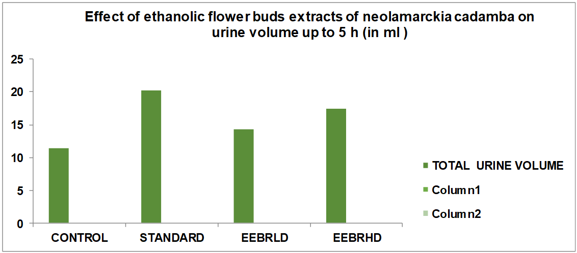Fig. 1: Effect of Alcoholic extract of flower buds of Neolamarckia cadamba total urine volume (in 5 h)