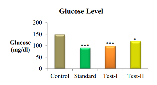 The blood glucose will measure by tail prick method using OneTouch glucose strips. Oral gavage of glucose solution 2 g/kg (40% aqueous solution) will be given to test animals. After glucose administration, glucose levels will be measured at 30, 60, 90and 120 min (Aguilar EC, Queiroz MDGMN, Oliveira DAD, Oliveira NJFD) [29]. After, the completion of experiments, animals were kept separately for 30 d under veterinary care till it completely recovers from stress and then return to animal housing room.