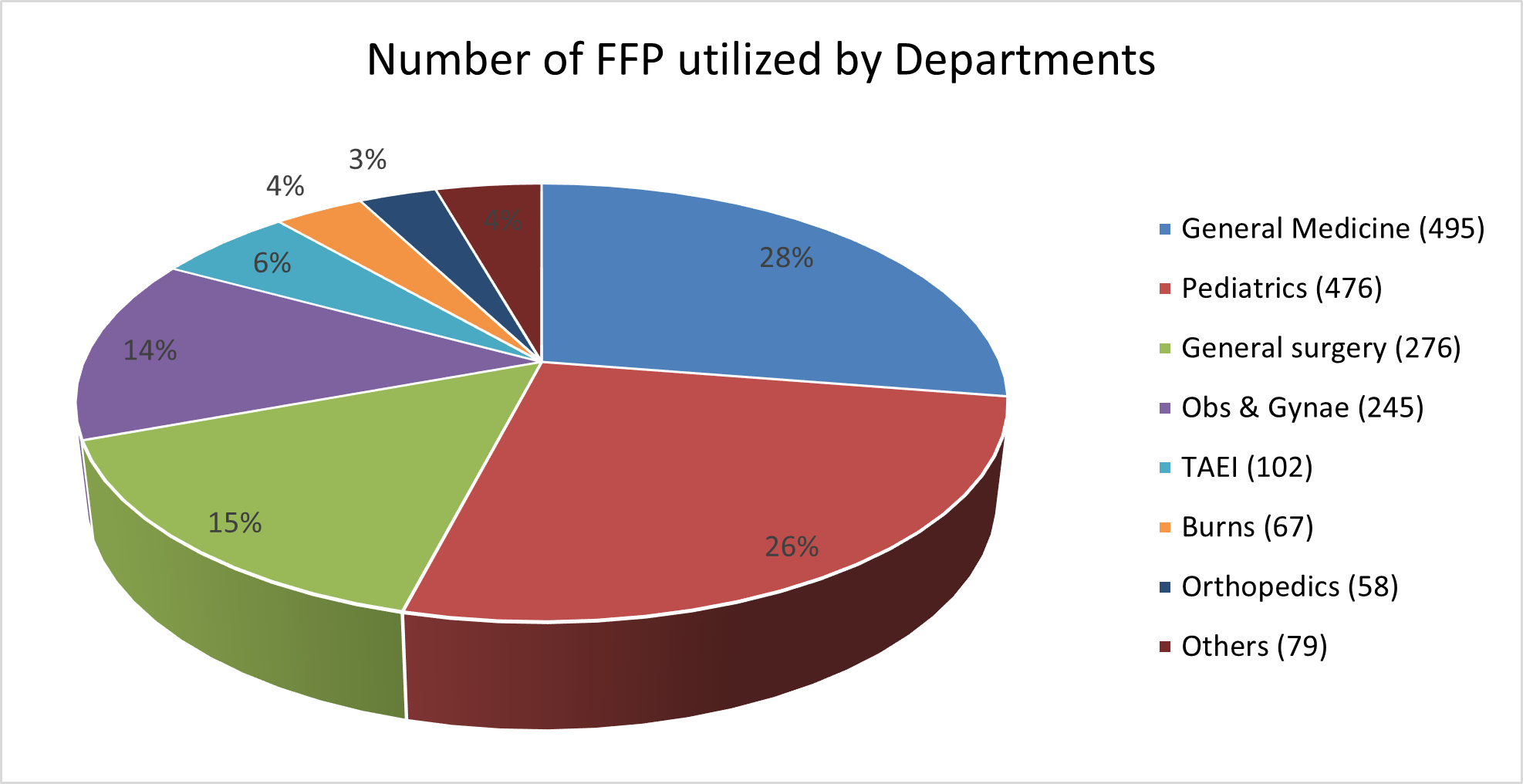 Fig. 3: Specialty-wise utilization of FFP (given as percentage of total FFP utilized)