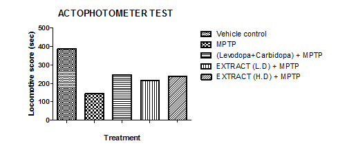Motor function, assessed through the rotarod and grip tests, showed marked improvement in extract-treated groups. The actophotometer test further confirmed enhanced locomotor activity, supporting the protective role of natural compounds in neurodegeneration.