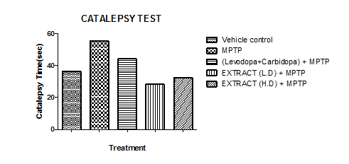 The significant reduction in catalepsy time in extract-treated groups supports their potential role in mitigating Parkinsonism. The observed benefits may be attributed to the antioxidant and anti-inflammatory properties of blueberries and strawberries, which can counteract MPTP-induced oxidative stress and dopaminergic neuronal damage.