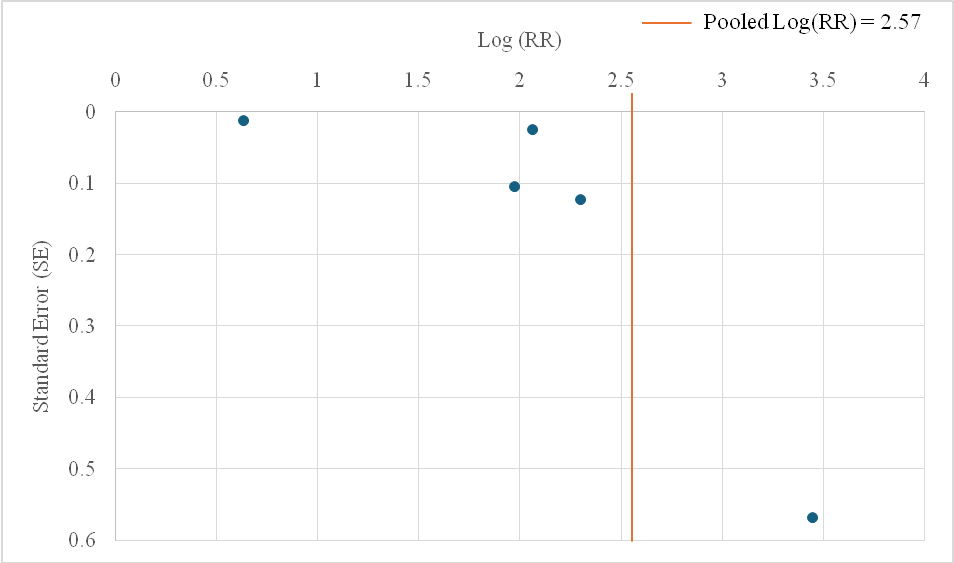 | Study ID | Log(RR) | SE | Inverse SE (Precision) | Standardized Effect Size | β₁ (Slope) | β₀ (Intercept) | SE of β₀ (Intercept) | t-value | df | p-value |