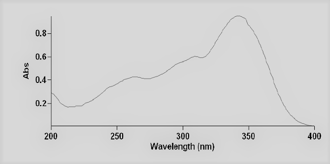 The FTIR studies of Piperine were performed over the 4000– 400 cm-1 wavelength regions at a resolution of 4 cm-1. Attenuated total reflectance is employed to analyse the IR transmission spectra and trace the distinguishing peaks, sample in the ratio 1:100 is mixed with KBr for analysis by FTIR spectrophotometer. Lambda max is the wavelength of light in the ultraviolet region at which maximum absorbance is exhibited by the compound. Sample was dissolved in methanol to prepare stock solution and scan in UV spectrophotometer.