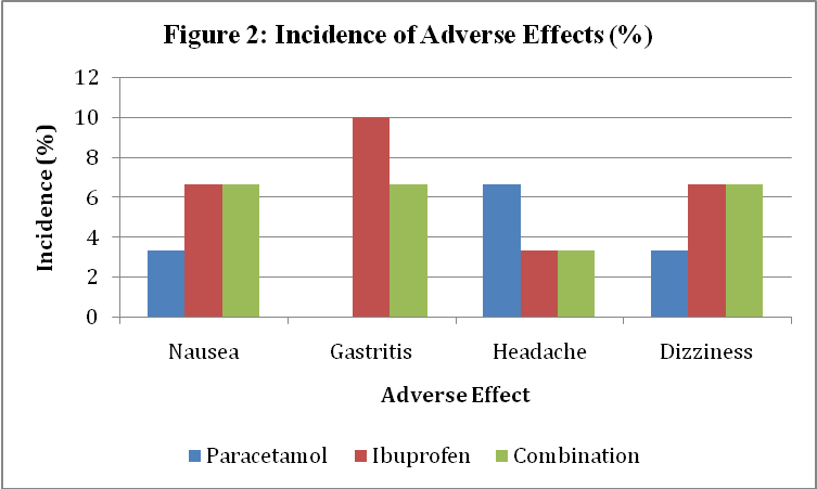 The relatively mild adverse effects observed (gastritis and nausea) reflect the acceptable tolerability of short-term combination therapy. Previous literature (Hersh et al., 2022; Ong et al., 2024) also supports that combining paracetamol and ibuprofen does not significantly elevate gastrointestinal or hepatic risk when used within therapeutic limits for brief durations [6-9].