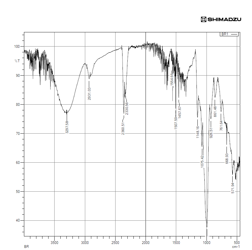 The FTIR spectrum of bromelain showed characteristic peaks corresponding to the N–H, C–H, C–O, and C=C functional groups, confirming its proteinaceous structure.