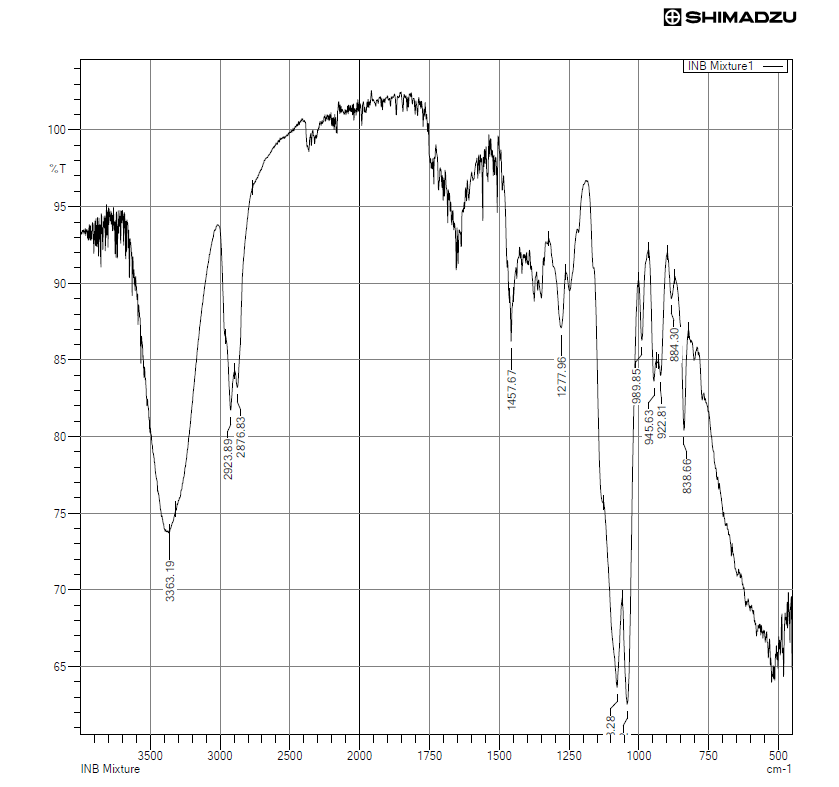 The FTIR spectrum of the physical mixture exhibited all the major characteristic peaks of indomethacin and bromelain, confirming their compatibility.