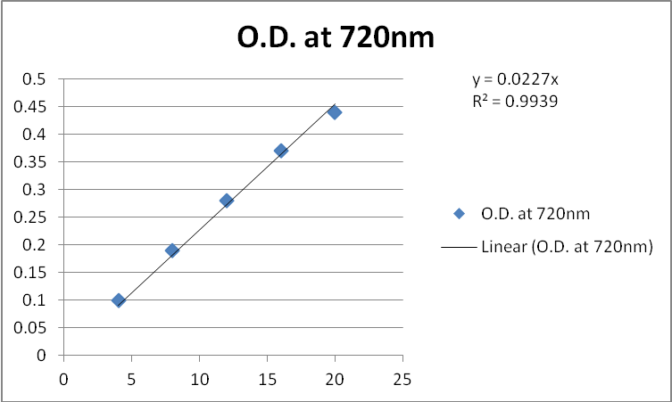 Total Phenolic content was estimated by using tannic acid (TA) as Standard solution for calibration curve preparation [25] Stock solutions 1 mg/ml of tannic acid was prepared in distilled water. From the above solution concentration of 100µg/ml was prepared and used in the experiment. Different concentration ranging from 4-20 µg/ml was prepared using distilled water. A volume of 0.5 ml FC reagent (1N) was added to each standard flask containing 0.5 ml of honey sample and then 2.5 ml of 20% sodium carbonate solution was added. The mixture was kept for 40 minutes and absorbance was recorded at 725 nm. The Total phenolic content (TPC) was expressed as milligram of Tannic acid equivalent (TA) in one gram of honey. [25, 26] The estimation of TPC for both honeys was carried out in triplicates.