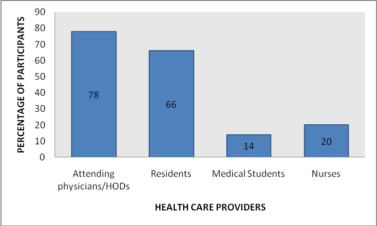 Attending Physicians and resident doctors were the major participants in our survey. Participation by medical students and nurses was minimal