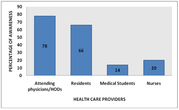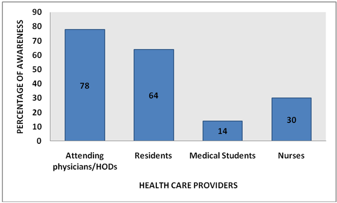 Methods: We conducted the prospective-observational study among healthcare providers like attending physicians, resident doctors, medical students and nurses. A questionnaire with multiple choice questions was designed and circulated among various healthcare providers in a tertiary care hospital in Hoskote, Bangalore, Karnataka. The participants were unaware of the study objective.