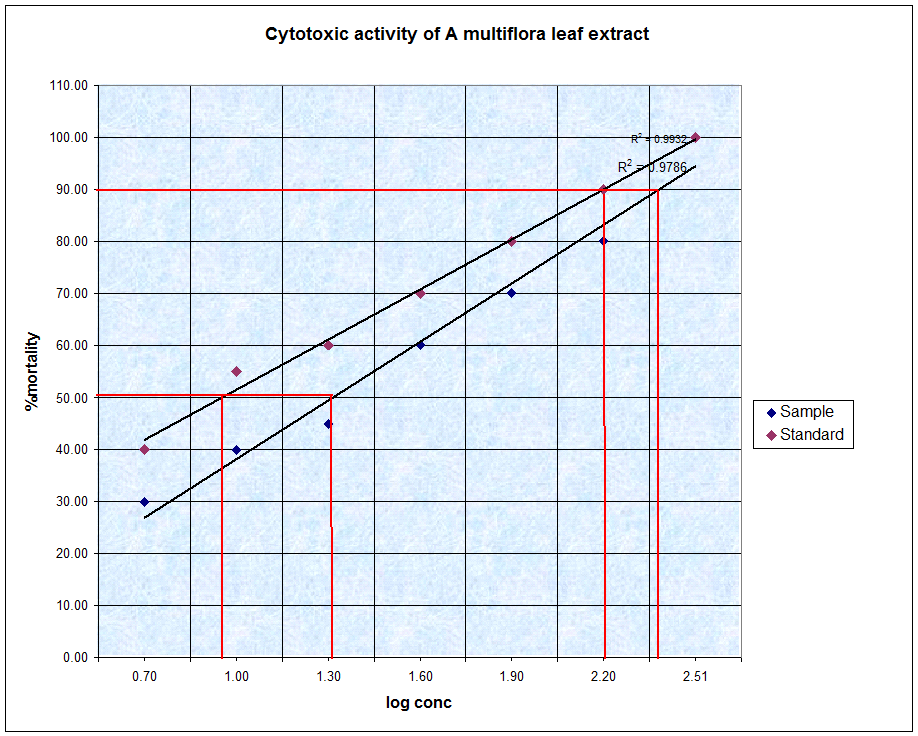 Table 2: Cytotoxic activity of the test sample of A. multiflora extract and chloramphenicol