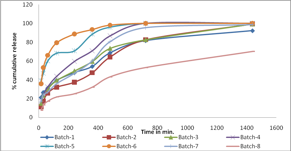 Fig. 1: (a) Graphical representation of comparative release profile of 1-8 formulations