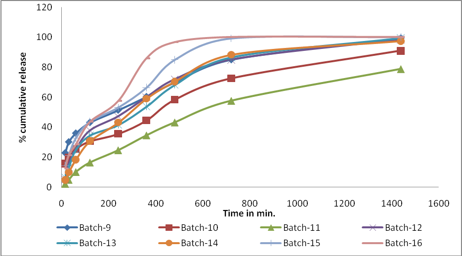 Fig. 1: (b) Graphical representation of comparative release profile of 9-16 formulations
