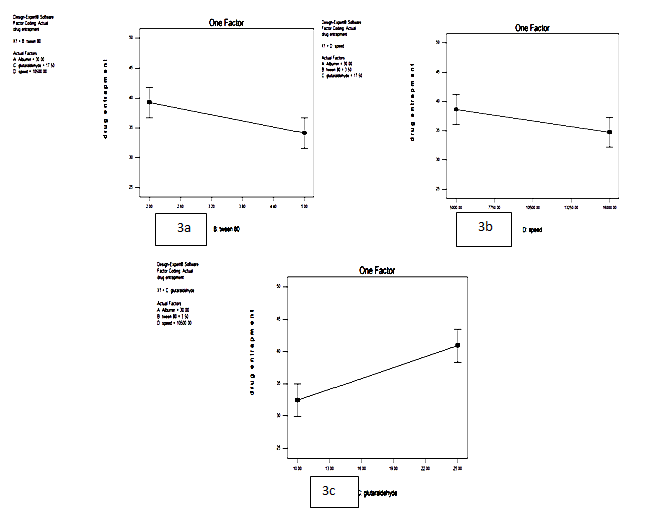 Fig. 3: Effect of variables on the entrapment efficiency (3a) tween 80 (3b) GTA (3c) Speed