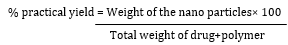 Spray dried nanoparticles were collected and weighed to determine % practical yield using following formula [19].