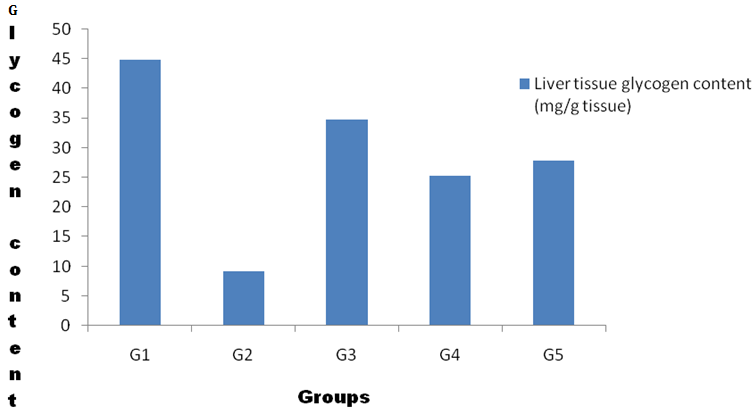 | Groups | Liver tissue glycogen content (mg/g tissue) |