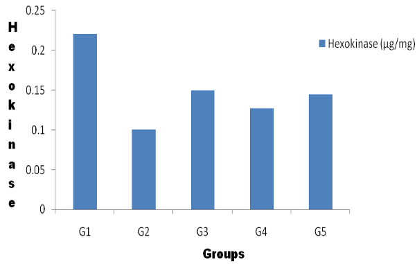 Fig. 4: Effect HAETF on Hexokinase (µg/mg) involved in carbohydrate metabolism in rats