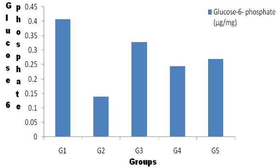 Fig. 5: Effect HAETF on glucose-6-phosphate (µg/mg) involved in carbohydrate metabolism in rats