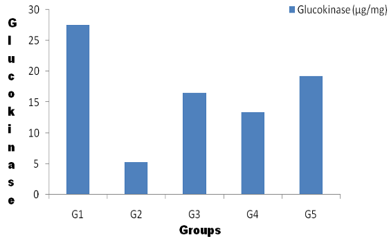 | Groups | Hexokinase (µg/mg) | Glucose-6-phosphate (µg/mg) | Glucokinase (µg/mg) |