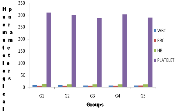 | Groups | WBC × 103/µl | RBC × 106/µl | HB % gm/dl | Platelet× 103/ml |