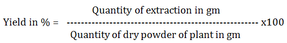 Successive solvent extraction yield % values in various organic solvent were observed as ethanol, with all parts of the plant (table 1).