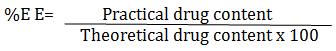 | Samples | Practical drug content(mg) | Theoretical drug content (mg) | % OfEntrapmet Efficiency |
