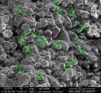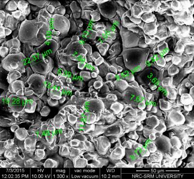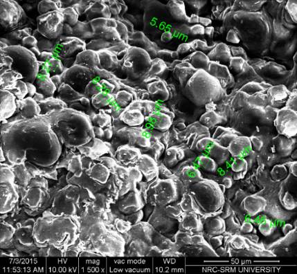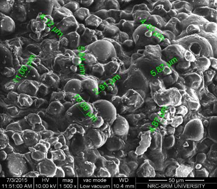 In the SEM analysis of microencapsulated astaxanthin isolated from Portunus sanginolentus (Three Spotted Crab) the size of the microparticle ranges from 5.65 µm to 8.98 µm which is indicated in fig no. 1b.