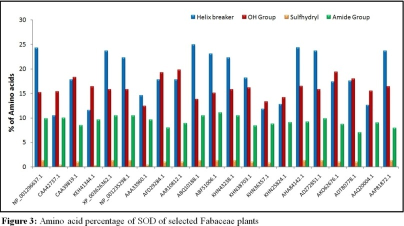 Table 1: Secondary structure prediction of different SOD types in selected Fabaceae plants by SOPMA
