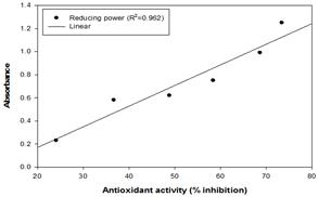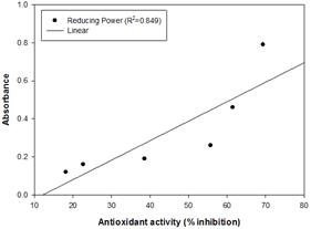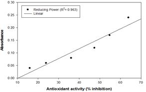 In this study reducing potential and antioxidant activity of extract increased with increase in extract concentration. So, very high and significant correlation was observed between reducing power and antioxidant activity. A similar relationship was also found between antioxidant potential and reducing the power of different plant extract [45].