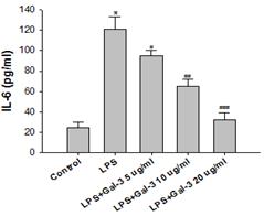Fig. 6: Dose-dependent decrease in LPS-induced IL-6 production from macrophages by addition of galectin-3