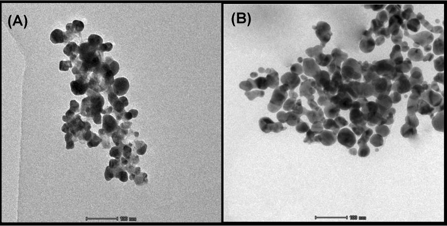 Fig. 1: (A) HRTEM image of zinc oxide nanoparticles synthesized from L. aculeate leaf extract (B) Chemical synthesis of zinc oxide nanoparticles