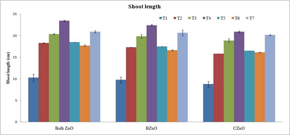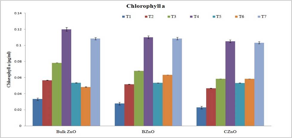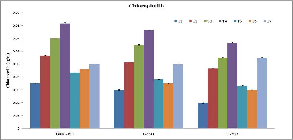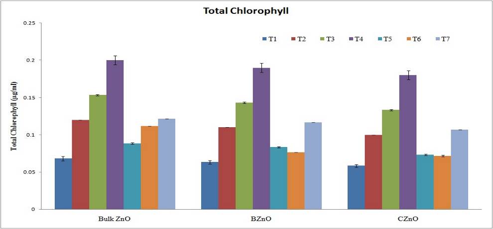 The plant morphological parameters like shoot length, root length, dry weight and fresh weight of test crops treated with zinc oxide nanoparticles were carried out by using the standard procedures [12]. Chlorophyll (chlorophyll a, chlorophyll b and total chlorophyll) [13], total carbohydrates [14], reducing sugars and protein [15] were determined by standard procedure. Statistical analysis was used to analyze the significant differences among different treatments for studied parameters.