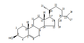 31.30 (C-1), 32.00 (C-2), 72.00 (C-3), 42.20 (C-4), 140.01 (C-5), 122.14 (C-6), 32.02 (C-7), 46.11 (C-8), 49.80 (C-9), 36.12 (C-10), 20.98 (C-11), 28.20 (C-12), 42.34 (C-13), 57.00 (C-14), 24.32 (C-15), 40.12 (C-16), 56.20 (C-17), 12.00 (C-18), 19.50 (C-19), 36.20 (C-20), 19.50 (C-21), 36.15 (C-22), 24.67 (C-23), 39.90 (C-24), 36.00 (C-25), 23.40 (C-26), 23.41 (C-27), 32.20 (C-28), 29.45 (C-29) |