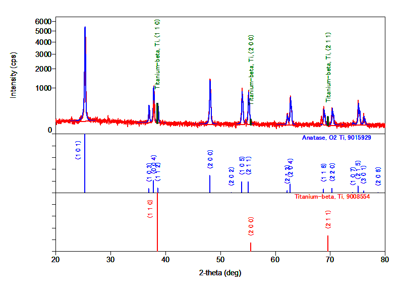 The formation of anatase crystal phase was confirmed from the peak signals at 25.38 °, 37.86 °, 48.09 °, 53.96 °, 55.11 °, 62.73 ° and 75.07 ° corresponding to planes (1 0 1), (0 0 4), (2 0 0), (1 0 5), (2 1 1), (2 0 4) and (2 1 5) respectively, which coincide with Crystallography Open Database (COD) DB Card number 9008213. While most of the biologically synthesized TiO2 NPs were found to be predominantly in anatase crystal phase [8, 9, 18] rutile crystal phase were also reported [5, 16, 17]. In addition to these peaks, three prominent peaks at 38.63, 55.11 and 68.80 corresponding to planes (1 1 0), (2 0 0), (2 1 1) respectively indicating the presence of Titanium beta. The peaks are comparable with the standard peaks in COD DB Card number 9008554. The average particle diameter of the nanoparticles was calculated from XRD pattern using the Scherrer’s equation