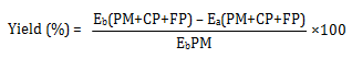 Where, Eb: before extraction; Ea: after extraction; PM: powdered material; CP: cotton plug; FP: filter paper.