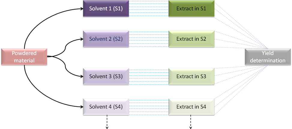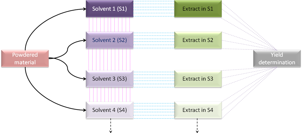 Fig. 4: Flowchart for serial extraction followed by polar to non-polar solvent (s), [Polarity: S1>S2>S3>S4>----]