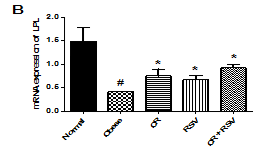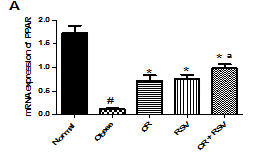 Both consumptions of calorie restricted diet and resveratrol showed a significant increase in mRNA expression of PPARg and consequently LPL as one of its target genes and thus protect from many detrimental effects of obesity. This action is obtained through maintaining the differentiated state of adipocytes and the growing number of small adipocytes resulting in increasing insulin sensitivity, and possibly by causing apoptosis of large fat cells [22, 23].