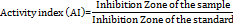 AI: Activity Index, RPI: Relative Percentage Inhibition, (-): No inhibitory activity