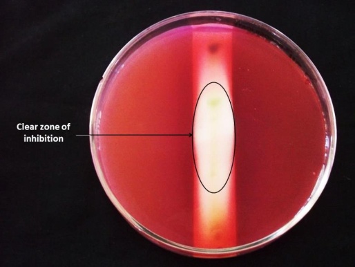The total area of the inhibition was calculated by using the area = πr2; where r = radius of the zone of inhibition.