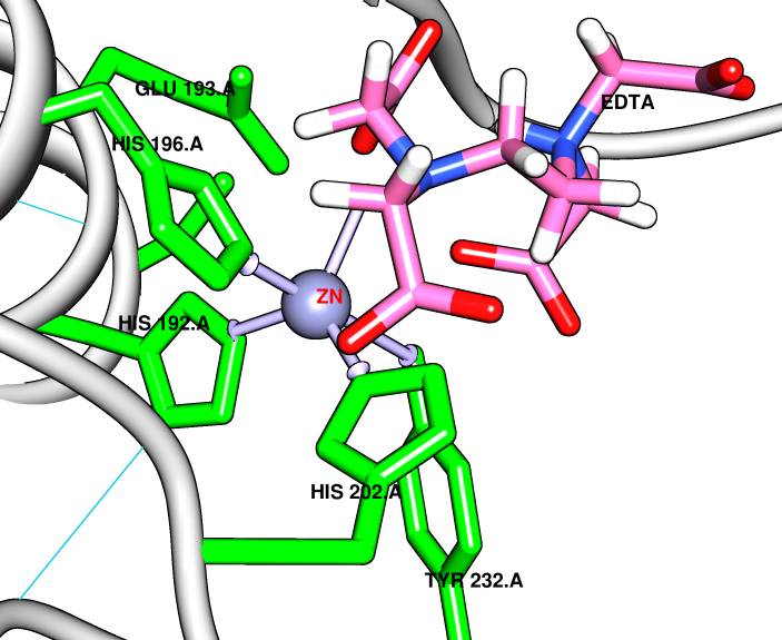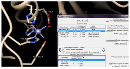 Fig. 2: Trigonal bipyramidal structure of serrapeptidase with zinc binding site of metal geometry