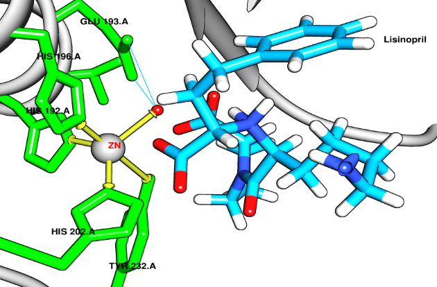 Fig. 4: Predicted molecular docking pictures with Inorganic substances of EDTA and Lisinopril