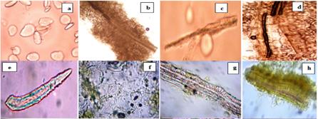 Powder microscopy is used to study the specific microscopical characters of medicinal plants using different staining reagents. These studies are very useful diagnostic tools for the standardization of crude drugs and identification of adulterants. In the powder microscopic analysis, the diagnostic microscopic features in Panchasakara Churna were able to confirm the presence of its ingredients (fig. 1).