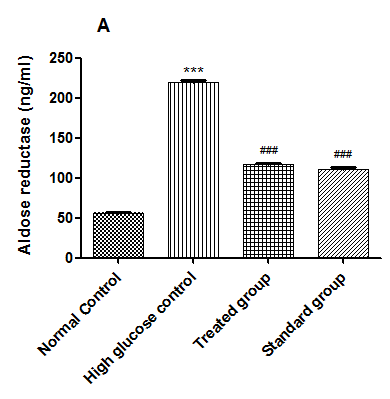 The results indicate over-expression of AR and SDH in a hyperglycemic condition while treatment with SMC significantly reduced AR expression as compared to the high glucose control (p<0.001).