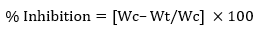 The percent inhibition increase in the weight of the cotton pellets was calculated by: