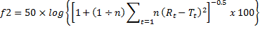 The similarities between the results of dissolution testing of solid dispersion and physical mixture with pure gliclazide were carried out using the formula as follows: