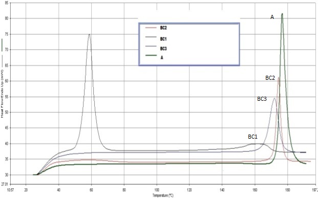 Fig. 4: DSC thermogram BC1, BC2, and BC3