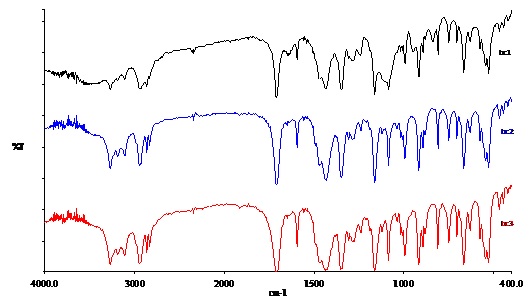 Fig. 7: FTIR spectra BC1, BC2, and BC3 (from top to bottom)
