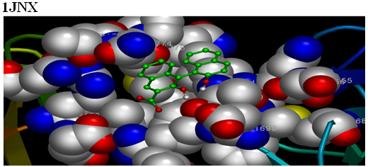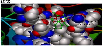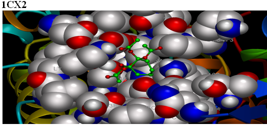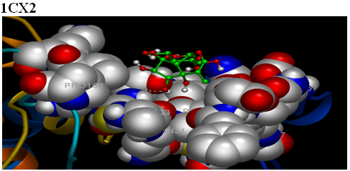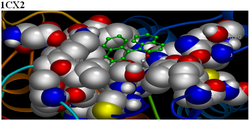 Proteins such as 1CX2, 1JNX, 2ITO were docked against the obtained three ligands using Autodock 4.0 to find and explored the protein ligand interactions with binding geometries. The predicted active site i. e involved in the protein-ligand complex was mainly targeted by the docking process.