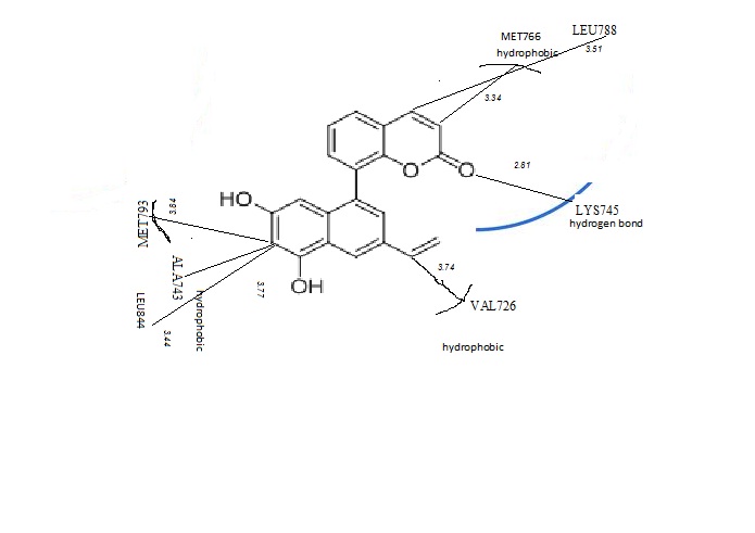 Fig. 4: Interactions between 2ITO receptor and ligand atom of DFM